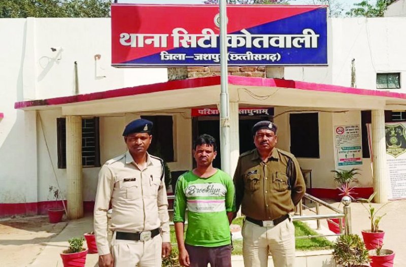 जशपुर पुलिस की गिरफ्त में पत्नी को जलाने का आरोपी।