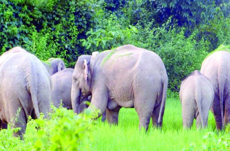 जिले में गन्ना और मक्के की फसल को नुकसान पहुंचा रहे हाथी।