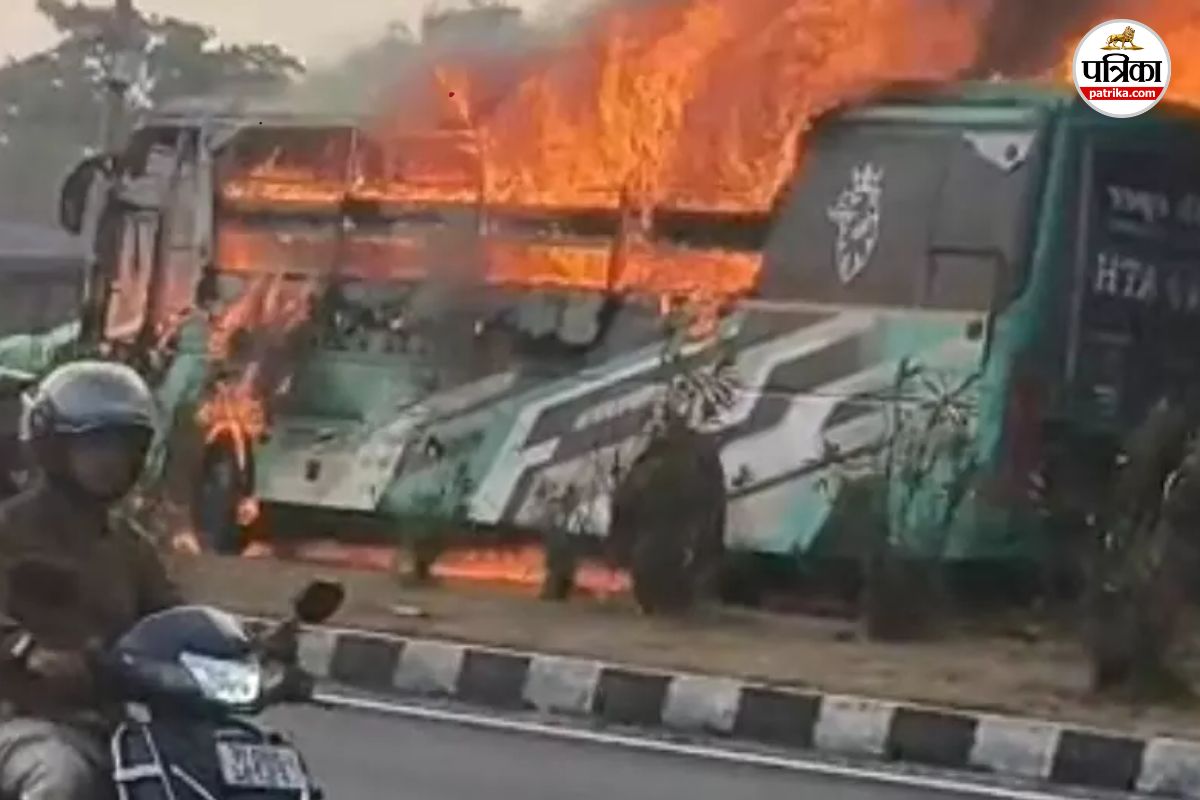 बस में लगी भीषण आग (photo source- Patrika)