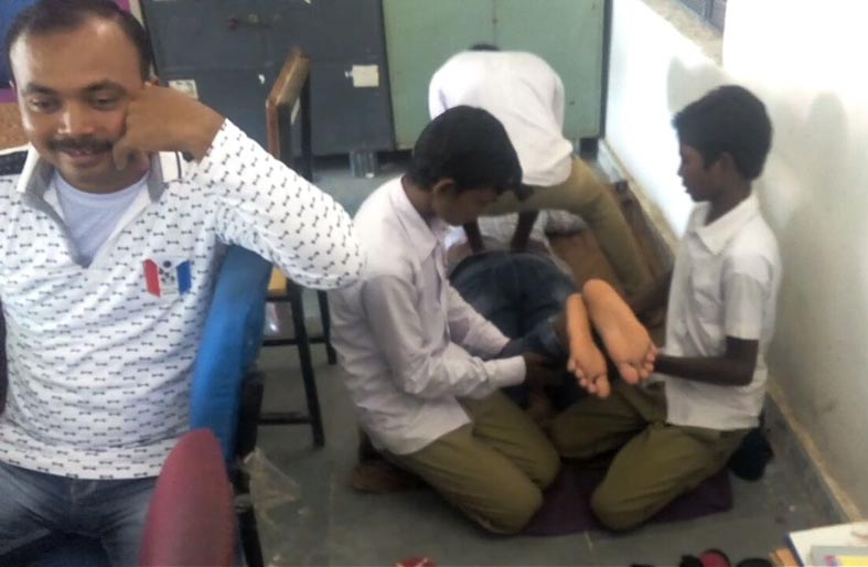 बच्चों को शिक्षा का पाठ पढ़ाने स्कूल जाने वाले शिक्षक उन्हें पढ़ाने के बजाए उनसे अपने शरीर की मालिश कराते हैं। यह हरकत बेखौफ होकर ड्यूटी के दौरान डे्रस पहने हुए स्कूली छात्रों से कराते हैं। एक ऐसा ही शिक्षा की गुणवत्ता के लिए किए जा रहे कार्यों की हकीकत सामने लाने वाला मामला फरसाबहार विकासखंड के तुमला थाना क्षेत्र में स्थित उच्चतर माध्यमिक विद्यालय से सामने आया है। उक्त इलाके में स्थित स्कूल में पदस्थ अंग्रेजी के व्याख्याता पंचायत(शिक्षाकर्मी वर्ग-1) कक्षा के दौरान उनसे बच्चों से मालिश कराते हैं। यह शर्मनाक हरकत मोबाईल में रिकार्ड की गई एक विडियो से सामने आया है, जिसमें तुमला उमा विद्यालय में पदस्थ अनुप मिंज तीन विद्यार्थियों से अपने शरीर की मालिश करा रहे हैं। मालिश के दौरान तीनों विद्यार्थी अपने स्कूली ड्रेस में मौजूद थे। शिक्षक ने स्कूल टाइम में ही बुलवाकर कक्षा में उन्हें पढ़ाई कराने के बजाए अपने शरीर की थकान मिटाने की जुगत भिड़ा ली।