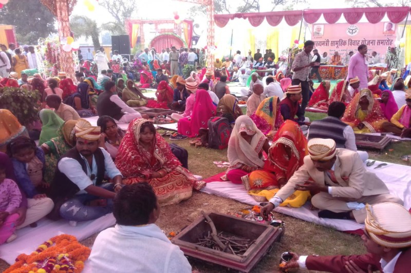 जौनपुर. मुख्यमंत्री सामूहिक विवाह योजना के तहत ज़िले भर में 315 गरीब जोड़ों का विवाह कराया गया। इसमें सात मुस्लिम जोड़े को भी निकाह कबूल कराया गया। राज्यमंत्री और आला अधिकारी नवविवाहितों को आशीर्वाद देने पहुंचे।