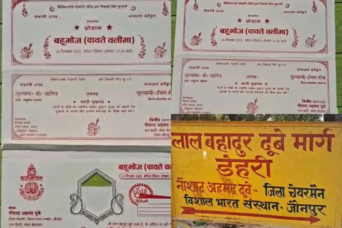 जौनपुर (wedding card viral Muslim family Dubey surname): जौनपुर जिले में एक ऐसी शादी है जो चर्चा का विषय बनी हुई है, क्योंकि शादी के लिए छपवाया गया कार्ड अब सोशल मीडिया पर तेजी से वायरल हो रहा है। इसके वायरल होने के पीछे सबसे बड़ा कारण यह है कि शादी एक मुस्लिम परिवार में हो रही है, लेकिन मुस्लिम परिवार ने अपने नाम के आगे अपना सरनेम दुबे लिखा हुआ है, जो इन दिनों सुर्खियों में है।