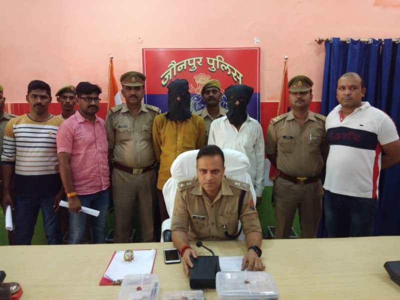 जौनपुर. जिले के थाना सिंगरामऊ पुलिस ने डाक्टरों से 25 लाख रुपए की रंगदारी मांगने, रंगदारी न देने पर डाक्टरों और एक पूर्व जिला पंचायत सदस्य की हत्या की योजना बनाते हुए अपराधिक इतिहास के दो बदमाशों को गिरफ्तार कर उनके कब्जे से दो तमंचा, कारतूस, मोबाइल फोन व चोरी की मोटर साइकिल बरामद किया है। पुलिस अधीक्षक आषीष तिवारी ने सोमवार को पत्रकारांे को बताया कि कुसहां मोड़ पर सिंगरामऊ पुलिस टीम मौजूद थी कि मुखबिर द्वारा बताया गया कि जिन बदमाशों द्वारा डाक्टरों से रंगदारी मांगी गई है वे चोरी की मोटरसाइकिल के साथ कुसहां मोड़ की तरफ आ रहे हैं एवं बस द्वारा लखनऊ जा सकते हैं।