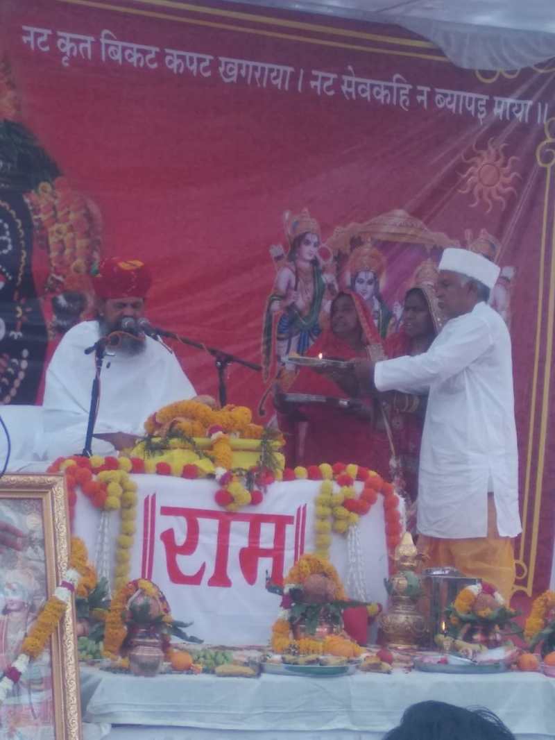शनिवार को झाबुआ विधायक एवं पूर्व केंद्रीय मंत्री कान्तिलाल भूरिया ने आकर व्यासपीठ का पूजन कर आरती उतारी। मंच की ओर से विधायक भूरिया का सम्मान भी किया गया। विधायक ने स्वामी जी को राम का प्रतीक धनुष-बाण भेंट किया।सभा में कमरू अजनार ने भी राम को न भुलाकर उन्हें अपने हृदय के मंदिर में विराजमान करने का आह्वान किया, ताकि जिले में धर्मांतरण जैसी कोई घटना न हो। समारोह का संचालन जितेंद्र राठौड़ ने किया। मुख्य यजमान और कथा समापन के दिन आयोजित भंडारे का लाभ लेने वाले नटवर महेश हरसोला ने डेढ़ लाख रुपए और देने की घोषणा की। सहायक यजमान के रूप में बाबूलाल लच्छीराम राठौड़ ने सहभागीता की।