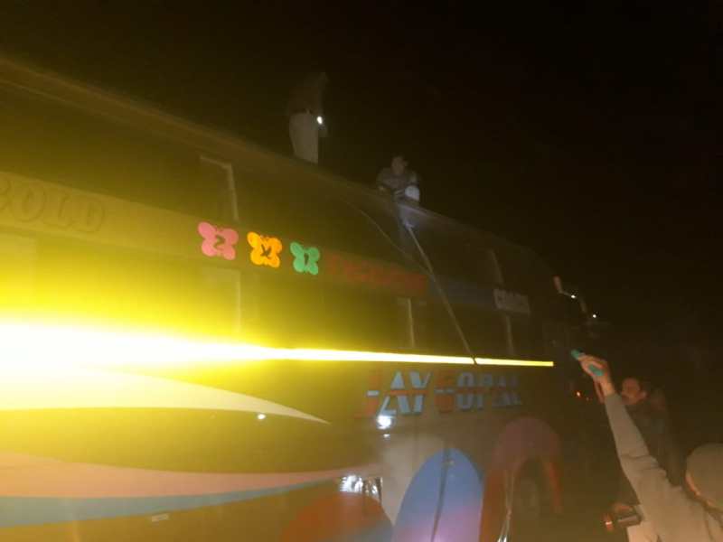 बस के अंदर लगभग 60 मजदूर बैठे थे। सभी कल्याणपुरा से गुजरात जा रहे थे। गनीमत रही कि बस में करंट नहीं फैला नहीं तो हादसा और भी गंभीर हो सकता था। बताया जा रहा है कि यह स्लीपर बस टूरिस्ट परमिट पर मजदूरों को गुजरात ले जा रही थी। इस तरह कई बसें अवैध तरीके से चल रही है।