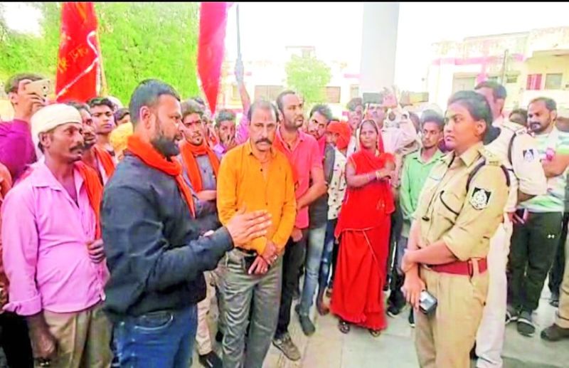 थाने के बाहर रातभर भजन-कीर्तन करते हुए धरने पर बैठ गए हिन्दू संगठन के कार्यकर्ता