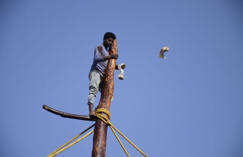 ५० फीट के गढ़ पर चढ़कर आदिवासी युवाओं ने दिखाया शौर्य