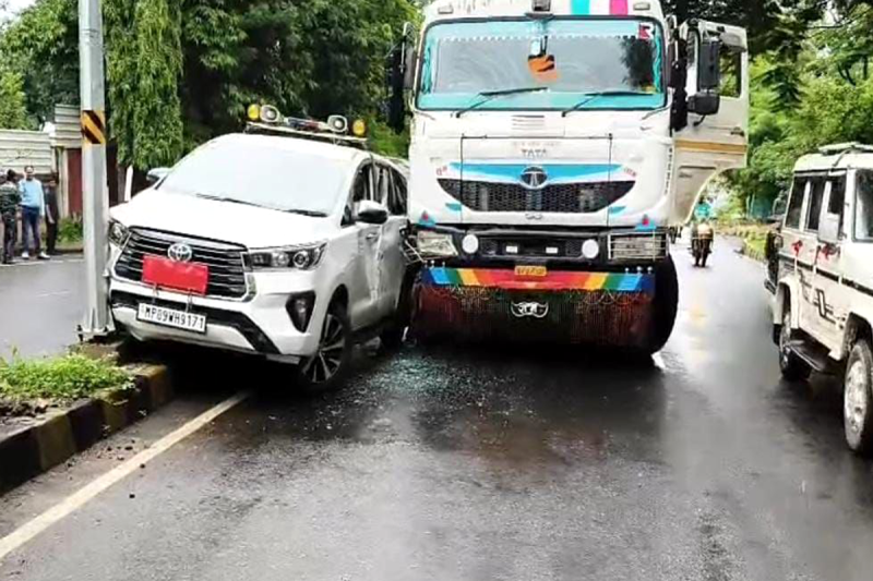 झाबुआ कलेक्टर नेहा मीना के वाहन को डंपर ने मारी जोरदार टक्कर (Photo Source- Patrika Input)