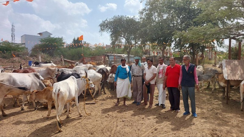 23jh goshala 1: झाबुआ। श्री सद्गुरू गोशाला का संचालन करने वाली समिति के सदस्य गायों के साथ।23jh goshala 2: झाबुआ। गोशाला में वर्तमान में 95 गाय और बछड़े हैं।