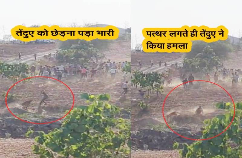 तेंदुए के द्वारा लोगों पर हमला किए जाने की घटना झाबुआ जिला मुख्यालय से लगे डूंगरालालू गांव की है जहां पहले तो तेंदुए ने सुबह करीब 10 बजे मवेशी चराने के लिए जा रहे दो ग्रामीणों पर अचानक हमला बोल दिया। इसके बाद तेंदुआ गांव के ही पास एक पुलिया के नीचे छिपकर बैठा हुआ था। जिसे देखने के लिए बड़ी संख्या में लोग पहुंच गए। वन विभाग का अमला भी मौके पर पहुंच चुका था और उसने पुलिया की दूसरी तरफ तेंदुए को पकड़ने के लिए पिंजरा लगा दिया था लेकिन इससे पहले ही शाम करीब पौने 5 बजे ग्रामीणों ने अचानक आगे बढ़ते हुए तेंदुए पर पथराव कर दिया जिससे तेंदुआ गुस्सा गया और अटैक कर दिया। वीडियो में आप देख सकते हैं कि पलक झपकते ही तेंदुआ पुलिया के नीचे से निकला और एक युवक पर झपट पड़ा। जिससे हड़कंप मच गया लोग यहां वहां भागने लगे। तेंदुए के हमले में युवक को गंभीर चोट आई है और उसे अस्पताल में भर्ती कराया गया है।