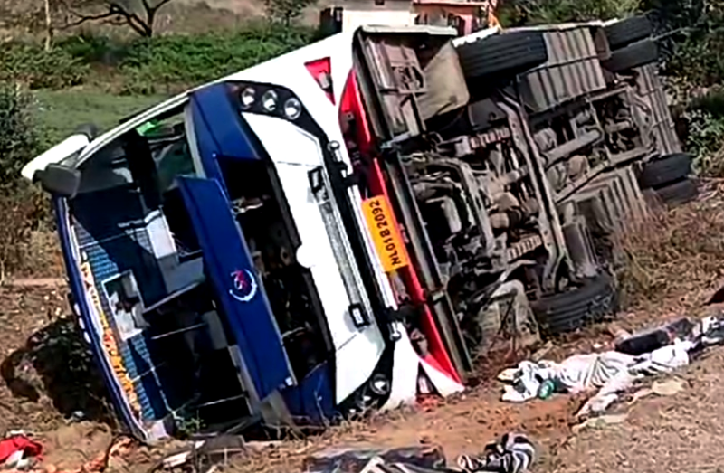 बड़ा सड़क हादसा : एमपी से गुजरात जा रही यात्रियों से भरी बस पलटी, 2 की मौत 20 गंभीर