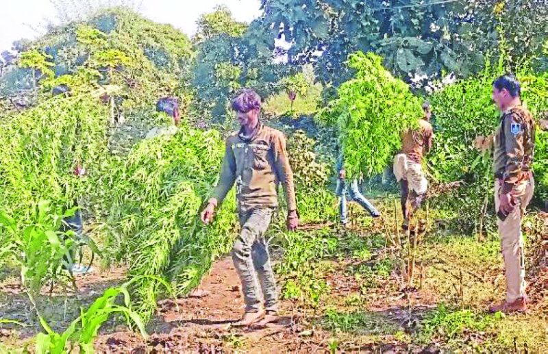 फसल के बीच लगे 410 गांजे के पौधे जब्त, एक गिरफ्तार, एक फरार
