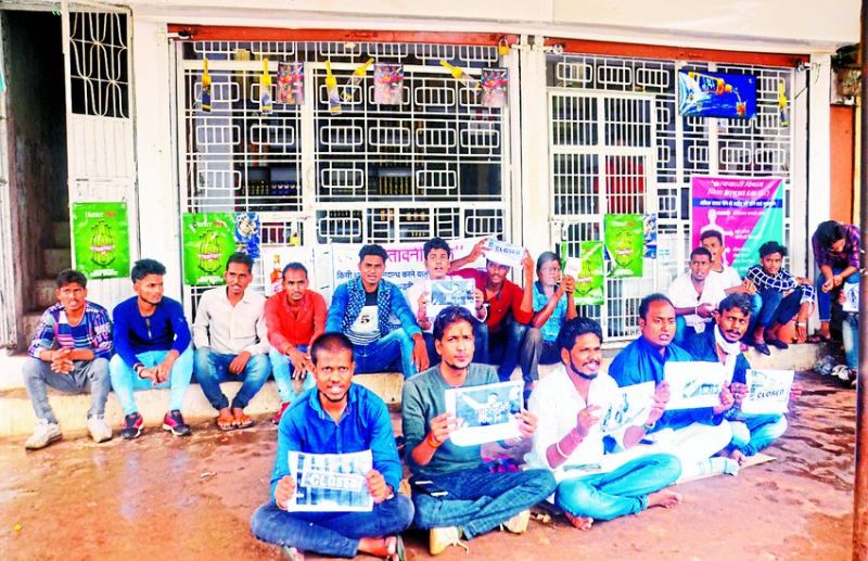 शराब बंदी को लेकर एनएसयूआई ने दुकान के सामने दिया धरना