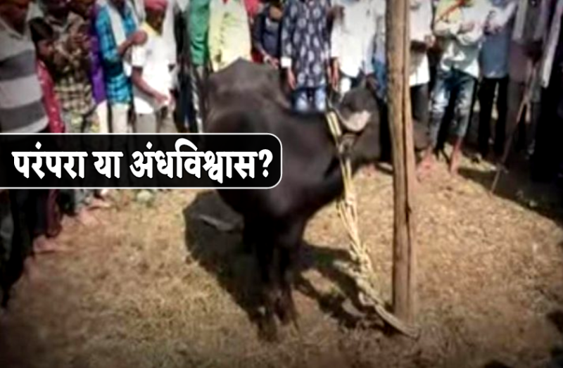 झाबुआ. भले ही आ भारत देश ने विकास की दौड़ में अनैकों उपलब्धियां हासिल कर ली हों। देशवासियों ने पढ़ लिखकर कई रूड़ीवादी परंपराओं को गलत ठहराते हुए उनका बहिष्कार कर दिया हो, लेकिन अब भी सवा अरब से अधिक आबादी वाले इसे देश में कई परंपराएं ऐसी हैं, जो सोचने पर मजबूर कर देती हैं। ऐसी ही एक अजीबो गरीब परंपरा मध्य प्रदेश के झाबुआ में भी बड़ी प्रसिद्ध है। यहां मौसम का मिजाज समझने के लिए लोग भैंसे की बलि देते हैं। अब इसे परंपरा कहेंगे या अंध्विश्वास ? ये आप ही सुनिश्चित करें।