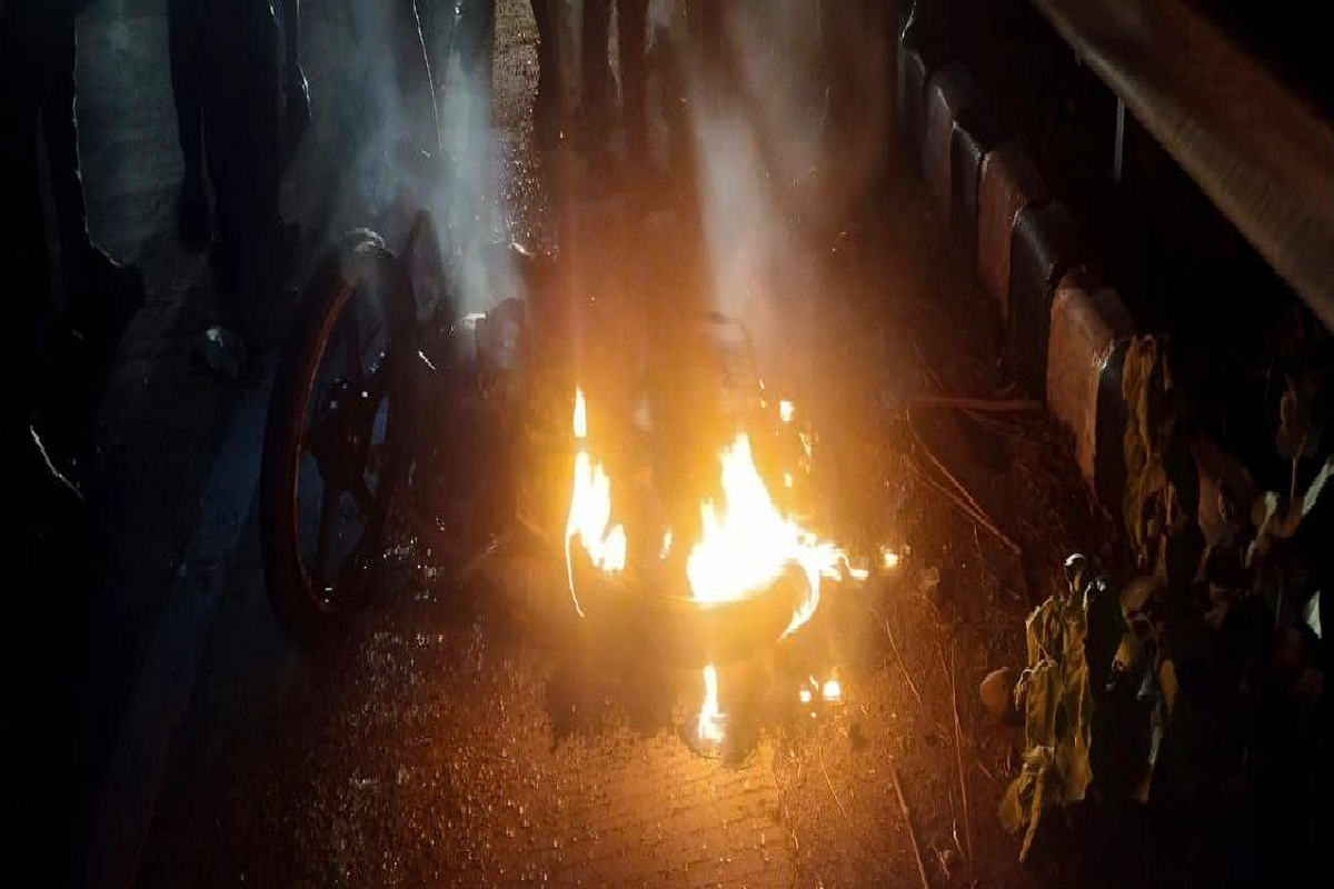बाइक में लगी आग (फोटो: पत्रिका)