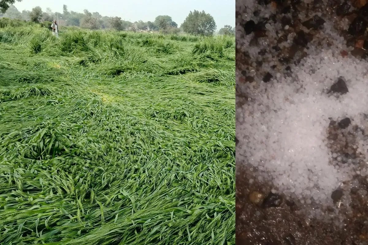 Hailstorm And Rain in Jhalawar: झालावाड़ के चौमहला और गंगधार सहित आसपास के ग्रामीण क्षेत्र में मंगलवार सुबह करीब 5 से 6 बजे के बीच बारिश हुई। इस दौरान ओलावृष्टि व तेज हवा से खेतों में खड़ी फसलें आड़ी हो गई। क्षेत्र के रामपुरा, कचनारा, बिशनिया, जखनी सहित कई गांव प्रभावित हुए।