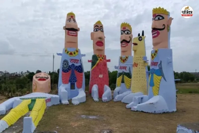 झालरापाटन . दशहरा मैदान में एक शतादी से अधिक समय से स्थापित रावण के परिवार के पुतले। फोटो पत्रिका