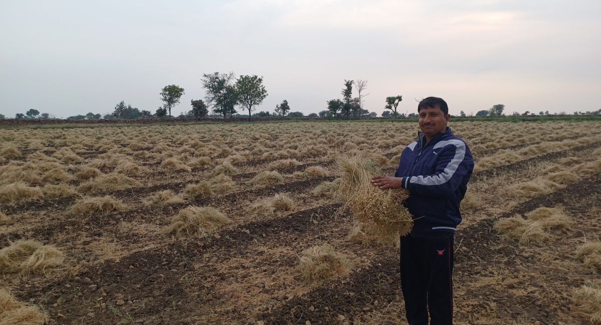 रटलाई. कस्बे के निकट बोरखेड़ी में मसूर की तैयार फसल दिखाता किसान।