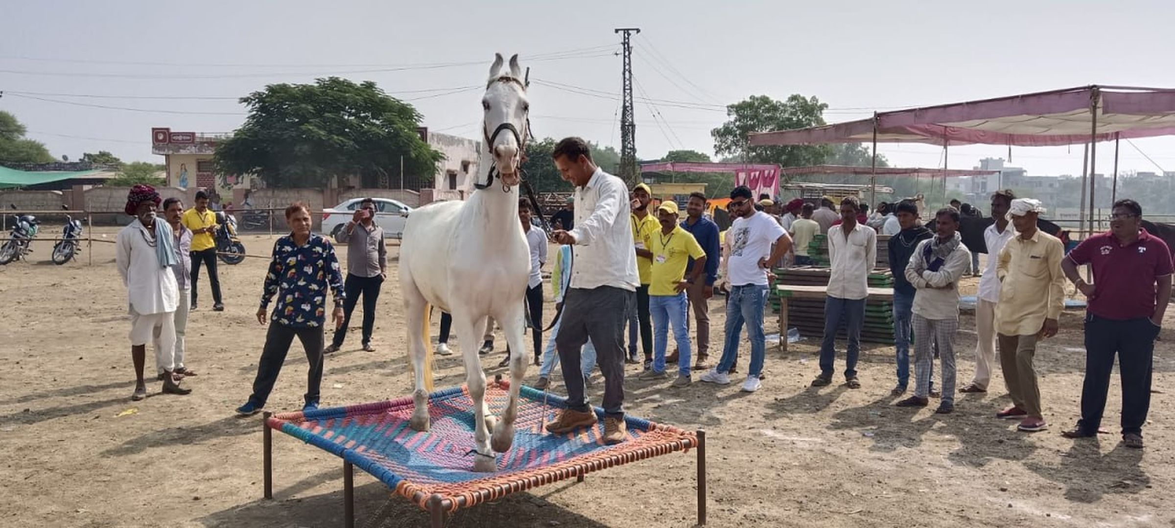 झालरापाटन. राज्य स्तरीय चंद्रभागा कार्तिक मेले के उद्धाटन के मौके पर घोडे का डांस देखने के लिए भीड़ लग गई। झालरापाटन तहसील के गांव गिरधरपुरा हेमडा निवासी पशुपालक सत्यनारायण अपने घोड़ों बिजली और रानी को प्रदर्शनी के लिए मेले में लेकर आए हैं। ढोल की थाप पर अपने मालिक के इशारों पर नृत्य करते हुए घोड़े ने करतब भी दिखाएं।