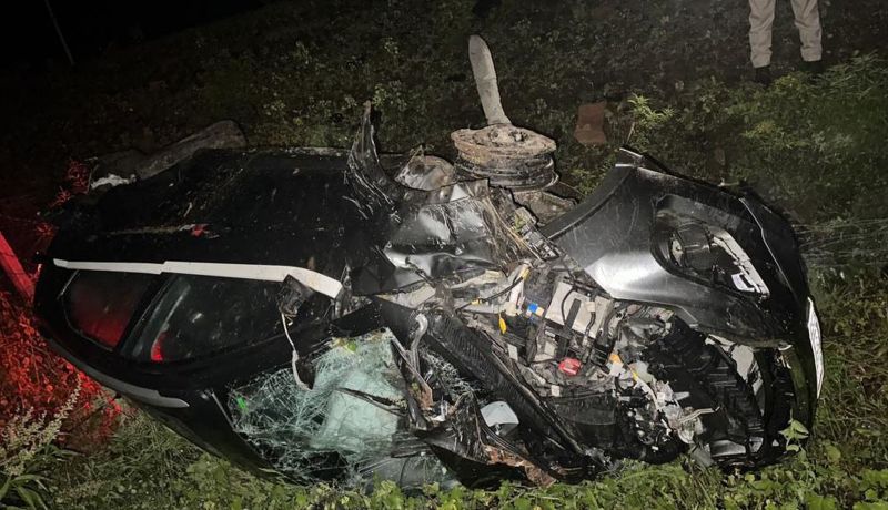 झालावाड़ जिले के भालता थाना क्षेत्र के सरड़ा मोड़ पर टायर फटने से पलटी कार।