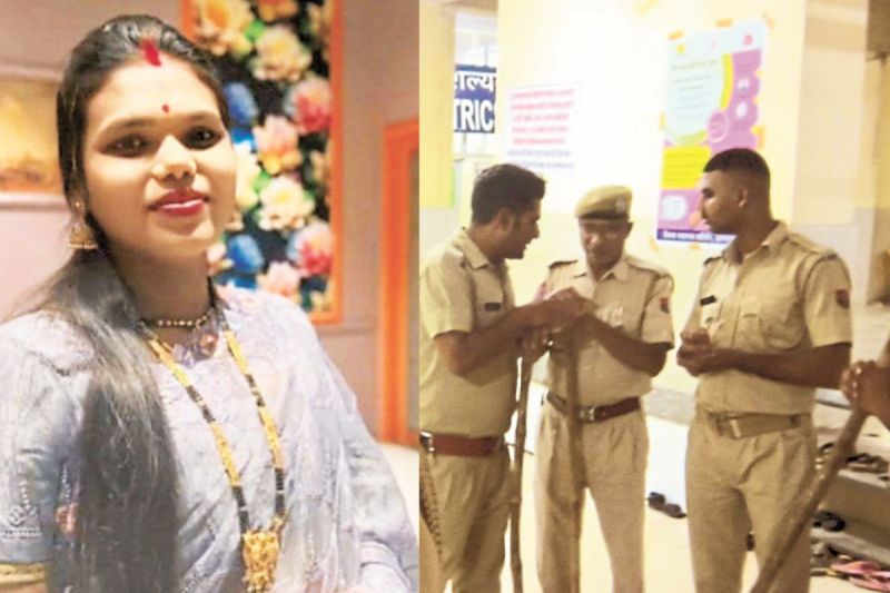 मृतका और जांच करती पुलिस टीम (फोटो: पत्रिका)