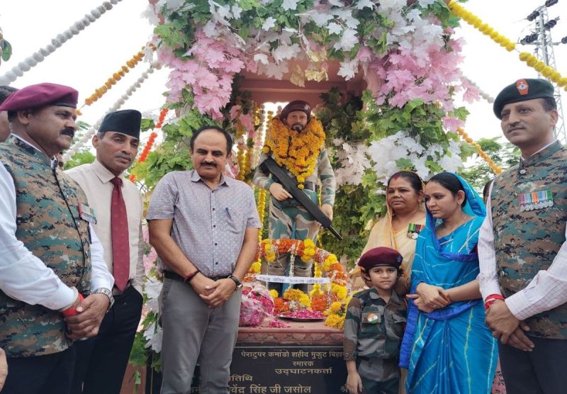 शहीद मुकुट बिहारी मीणा की पुण्यतिथि पर अम्बेडकर भवन के पास शहीद स्मारक पर गुरूवार को कर्नल रविन्द्र सिंह राठौड़ जिला सैनिक कल्याण अधिकारी कोटा एवं जिला कलक्टर अजय सिंह राठौड़ सहित शहीद की वीरांगना अंजना मीणा, पुत्री आर्वी एवं भूतपूर्व सैनिकों और गणमान्य नागरिकों द्वारा पुष्प अर्पित कर श्रद्धाजंलि दी गई।इस दौरान जिला परिषद् के मुख्य कार्यकारी अधिकारी शम्भु दयाल मीणा, उप जिला प्रमुख बैनाथ मीणा, पूर्व उप जिला प्रमुख भागचन्द दांगी, तहसीलदार नरेन्द्र मीणा, ओम पाठक, भारत सिंह राठौड़,भगवती प्रकाश, कैलाश धाकड़ एवं कल्याण सिंह सिसोदिया आदि मौजूद रहे।