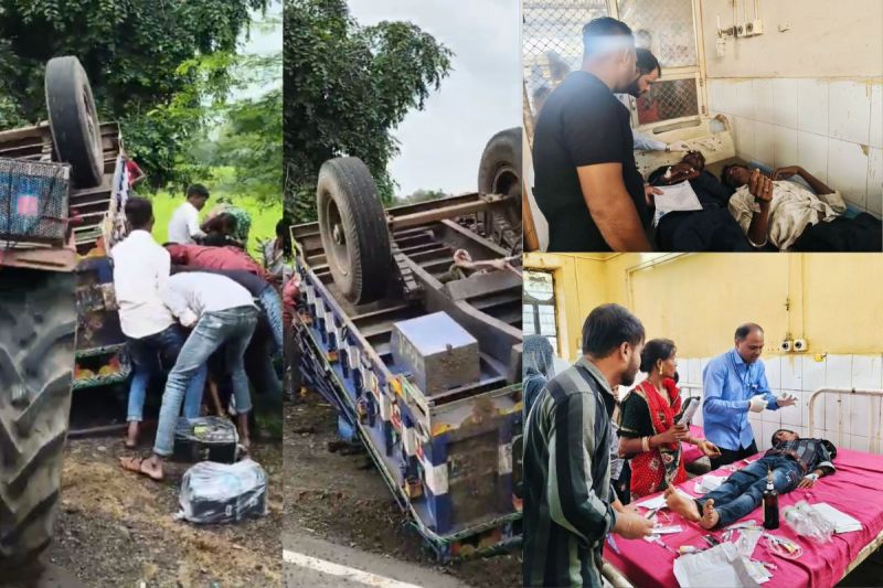 पलटी ट्रैक्टर-ट्रॉली (फोटो: पत्रिका)