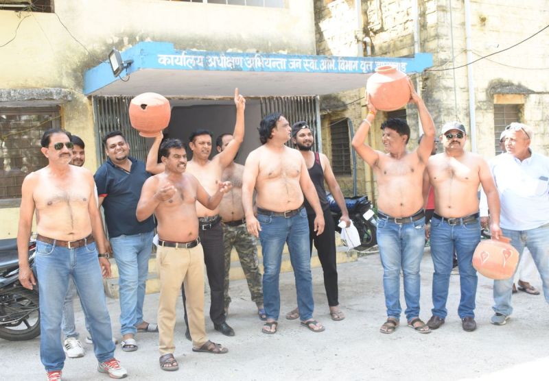 झालावाड़.शहर में भीषण गर्मी में भी लोगों को पीने का पानी नहीं मिल रहा है। कई दिनों से अधिकारियों को शिकायत करने के बाद भी ध्यान नहीं दिया जा रहा। मंगलवार को कांग्रेस कार्यकर्ताओं का धैर्य जवाब दे गया। लोगों ने अद्र्धनग्न प्रदर्शन कर साफ व पर्याप्त पानी देने की मांग की। कार्यकर्ताओं ने जलदाय विभाग के अधिकारियों के खिलाफ जमकर प्रदर्शन किया। इस दौरान लोगों ने मटकियां भी फोड़ी और शहर में गंदा पानी आने पर आक्रोश व्यक्त किया। अधिशासी अभियंता अमरसिंह मीणा द्वारा समय पर व पर्याप्त पेयजल सप्लाई देने के आश्वासन के बाद लोगों ने प्रदर्शन बंद किया। ज्ञापन सौंपा, कार्रवाई की मांग- कांग्रेस कार्यकर्ताओं ने अधिशासी अभियंता को ज्ञापन सौंपा। ज्ञापन में बताया कि जलदाय विभाग द्वारा पेयजल को आपूर्ति सुचारू रूप से नहीं दे रहे है। जिससे शहर वासियों को काफी समस्याओं का सामना करना पड़ रहा है। वहीं विभाग द्वारा शुद्ध पेयजल सप्लाई नहीं कर रहे है।