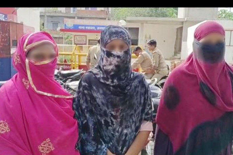 झांसी के नवाबाद थाने में परिजनों के साथ गैंगरेप पीड़िता।