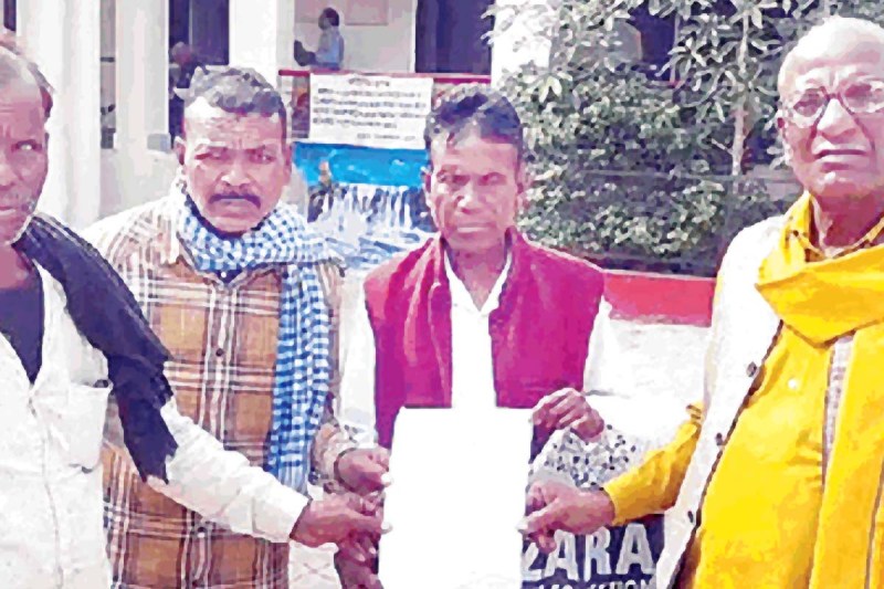 झांसी में डीएम को ज्ञापन देने पहुंचे मजदूरों के परिजन।
