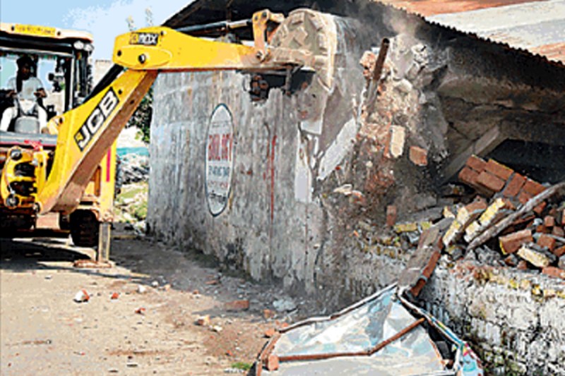 झांसी के आंतिया ताल पर चला बुलडोजर।