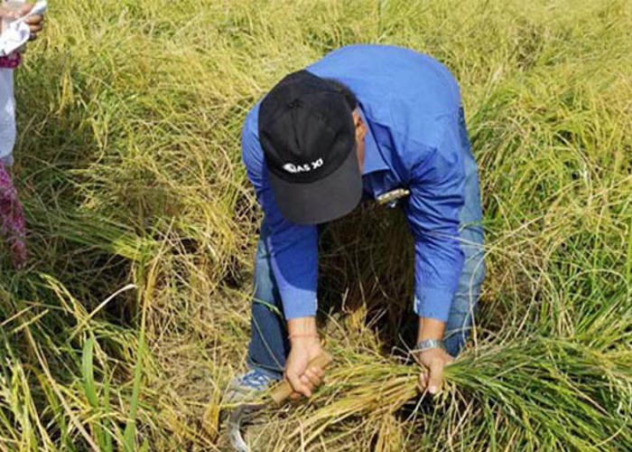 झांसी. जिलाधिकारी कर्ण सिंह चौहान की बिंदास कार्य प्रणाली की चर्चा लोगों में जब-तब खूब होती रहती है। इस बार उन्होंने खेत में पहुंचकर धान की फसल की कटाई करके सभी को चौंका दिया। यहां पर जिले में सूखे की स्थिति का आंकलन करने के लिए जिलाधिकारी खुद ही ग्राम गढ़मऊ में धान के खेत में हंसिया लेकर पहुंच गए और फसल काटने लगे। इसी बीच उन्होंने किसानों से कहा कि क्रॉप कटिंग के बाद प्राप्त आंकड़ों के आधार पर ही जनपद के सूखे की स्थिति स्पष्ट होगी।