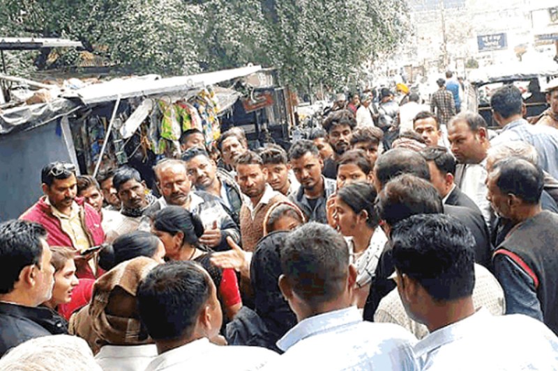 झांसी में बीच चौराहे पर पति पत्नी की लड़ाई।