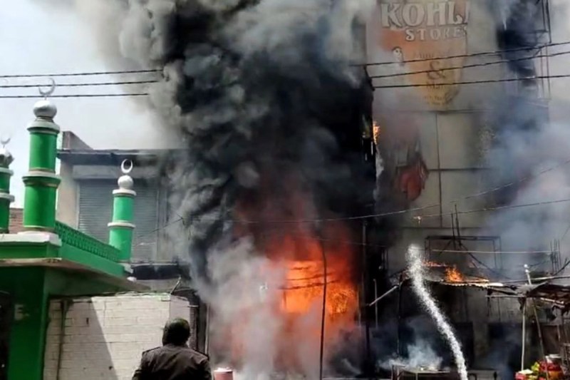 झांसी में लगी भीषण आग: पुलिस और दमकल कर्मी आग पर काबू पाते हुए