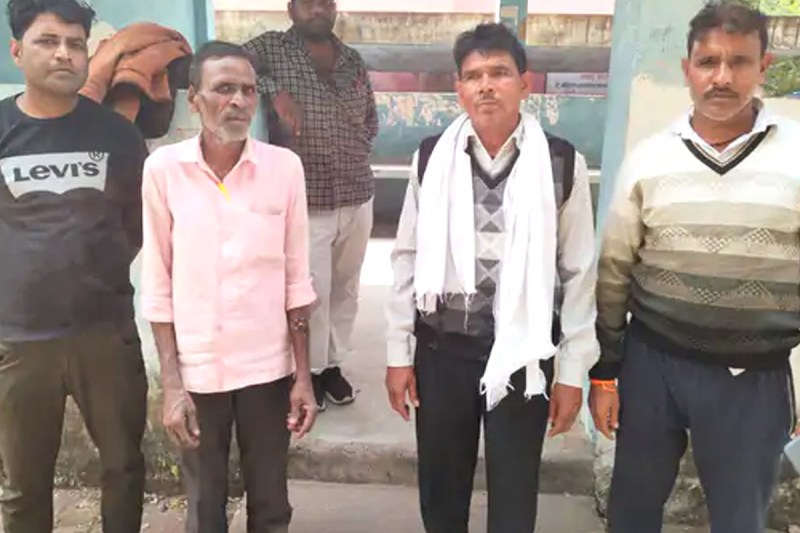 झांसी पोस्टमार्टम हाउस के बाहर खड़े संतोष कुमार अहिरवार के परिजन।