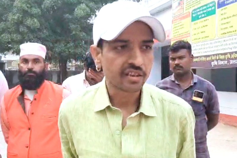 सीओ मोठ के पास शिकायत करने पहुंचे देवेश प्रताप।