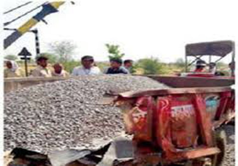 ट्रेन के इंजन से टकराई गिट्टी से भरी ट्रैक्टर-ट्राली
