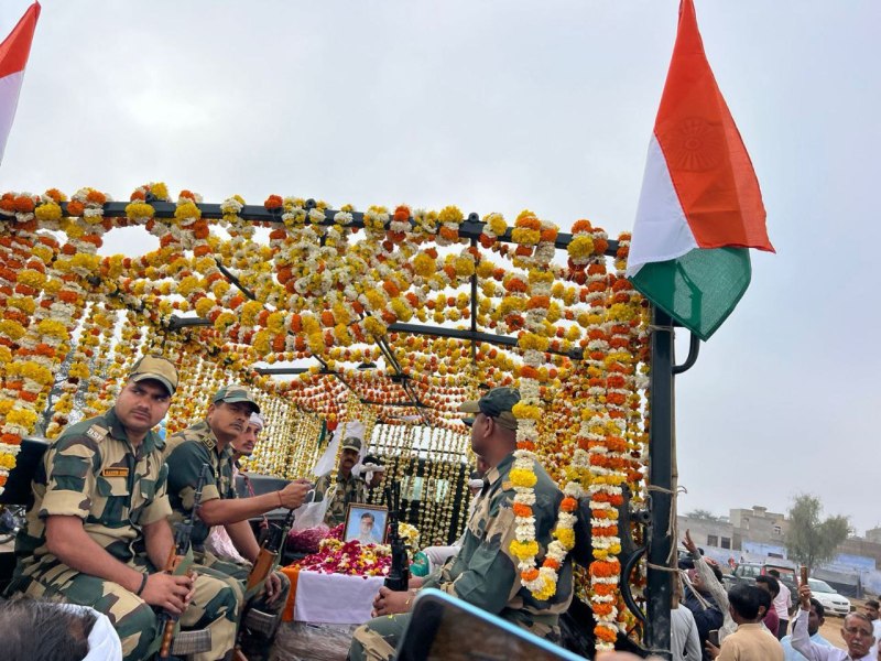 जानकारी के अनुसार शहीद जवान राजेश भांभू का गांव लालगढिय़ा में राजकीय सम्मान के साथ अंतिम संस्कार किया जाएगा। गौरतलब है कि बीएसएफ के जवान राजेश भांभू पुत्र मनीराम भांभू गुरुवार सुबह ड्यूटी के दौरान हार्ट अटैक आने से शहीद हो गए। जवान की पार्थिव देह शनिवार देर शाम को हेलीकॉप्टर के जरिए सूरतगढ़ वायुसेना स्टेशन पहुंचा। इसके बाद पार्थिव देह को सिटी पुलिस थाना में रखवाया गया। शहीद राजेश भांभू किसान परिवार से थे। इनके पिता मनीराम भांभू खेती करते हैं। दो भाइयों में सबसे बड़े राजेश को बचपन से ही देश सेवा करने का जज्बा था। उनका वर्ष 2013 में बीएसएफ में सलेक्शन हो गया था। उनकी शादी 2014 में हुई थी। जवान 2 माह पहले ही छुट्टी पर घर आया था।