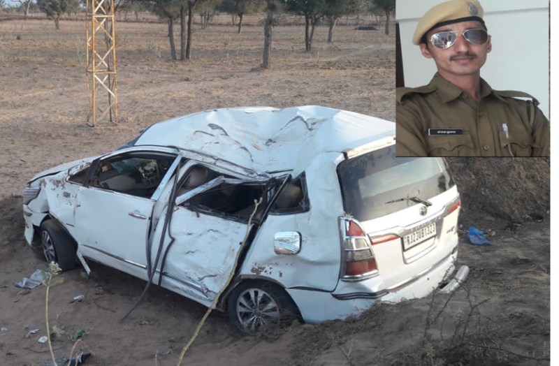 हैड कांस्टेबल संजीव मील ने बताया कि कार में सवार संजय (27) पुत्र जीवणराम जाट व संदीप (29) पुत्र सूरजाराम जाट निवासी भूदा का बास तथा बंटी (25) पुत्र रामनाथ जाट निवासी सीतसर (झुंझुनूं) झुंझुनूं से मंडावा आ रहे थे। तेतरा गांव के पास तेज गति के कारण कार अनियंत्रित होकर पेड़ से टकरा कर पलटी खा गई। इस हादसे में तीनों घायल हो गए। तीनों को सामुदायिक स्वास्थ्य केन्द्र मंडावा लाया गया। वहां से प्राथमिक उपचार के बाद बीडीके अस्पताल झुंझुनूं के लिए रैफर कर दिया। वहां चिकित्सकों ने पुलिसकर्मी संजय निवासी भूदा का बास को मृत घोषित कर दिया। एक अन्य पुलिसकर्मी संदीप व बंटी को बीडीके अस्पताल झुंझुनूं में भर्ती करवाया गया। संजय उदयपुर में पुलिस कंट्रोल रूम में कार्यरत था। वहीं घायल पुलिसकर्मी संदीप खेरवाड़ा जिला उदयपुर में कार्यरत है। बंटी निवासी सीतसर इनका रिश्तेदार है।