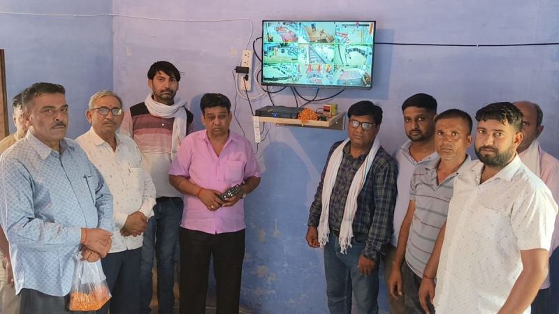 सीतसर के बालाजी धाम में सीसीटीवी कैमरे शुरू करते महंत व अन्य।