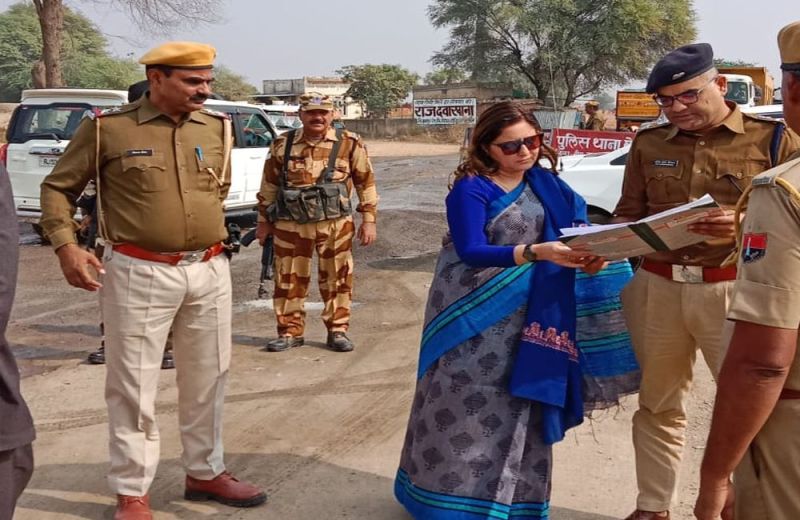 अधिकारियों से जानकारी लेती नीमकाथाना की जिला कलक्टर श्रुती भारद्वाज
