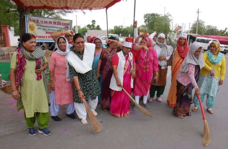 एएनएम ने झाडू लगाकर उठाई पे ग्रेड 36 सौ रुपए करने की मांग