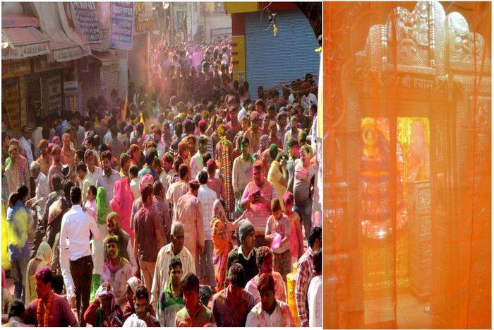 श्याम मंदिर में बाबा श्याम के आगे केसरिया रंग का झीना पर्दा लगा हुआ था, जिसमें से भक्त बाबा का दीदार कर मनौतियां मांग रहे थे। भारी भीड़ के चलते सुबह 11 बजे करीब श्याम पट्ट बंद कर दिए गए, जो शाम चार बजे खोले गए।