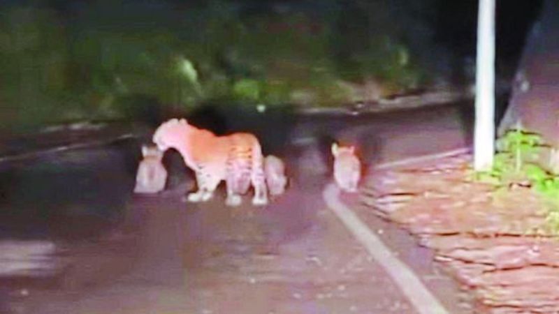 पैंथर के साथ नजर आते तीन शावक।