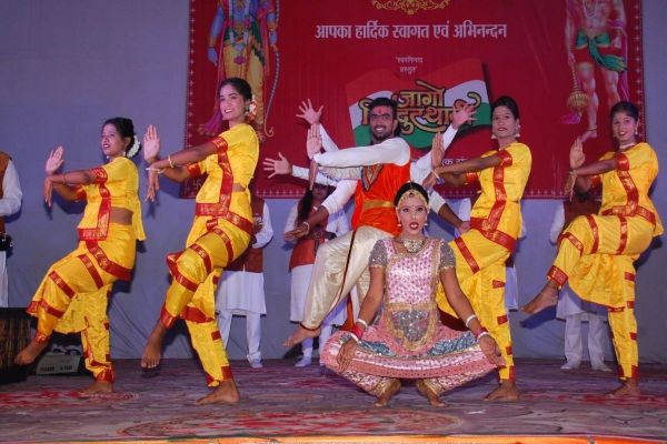 झुंझुनूं. हनुमान जयंती की पूर्व संध्या पर बंधे का बालाजी मंदिर में मुंबई के जागो हिंदुस्तानी के कलाकार प्रस्तुति देते हुए।