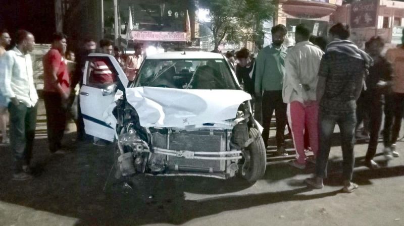 फिल्मी अंदाज में बाइपास पर शराबी युवक ने कार को मारी टक्कर, बाइक घुसी बेसमेंट के अन्दर