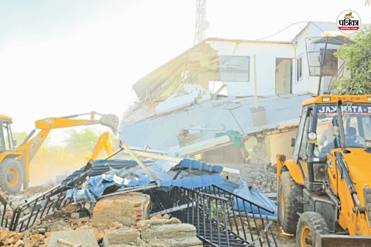 हिस्ट्रीशीटर श्रवण भादवासी की बिल्डिंग पर चला बुलडोजर। फोटो: पत्रिका