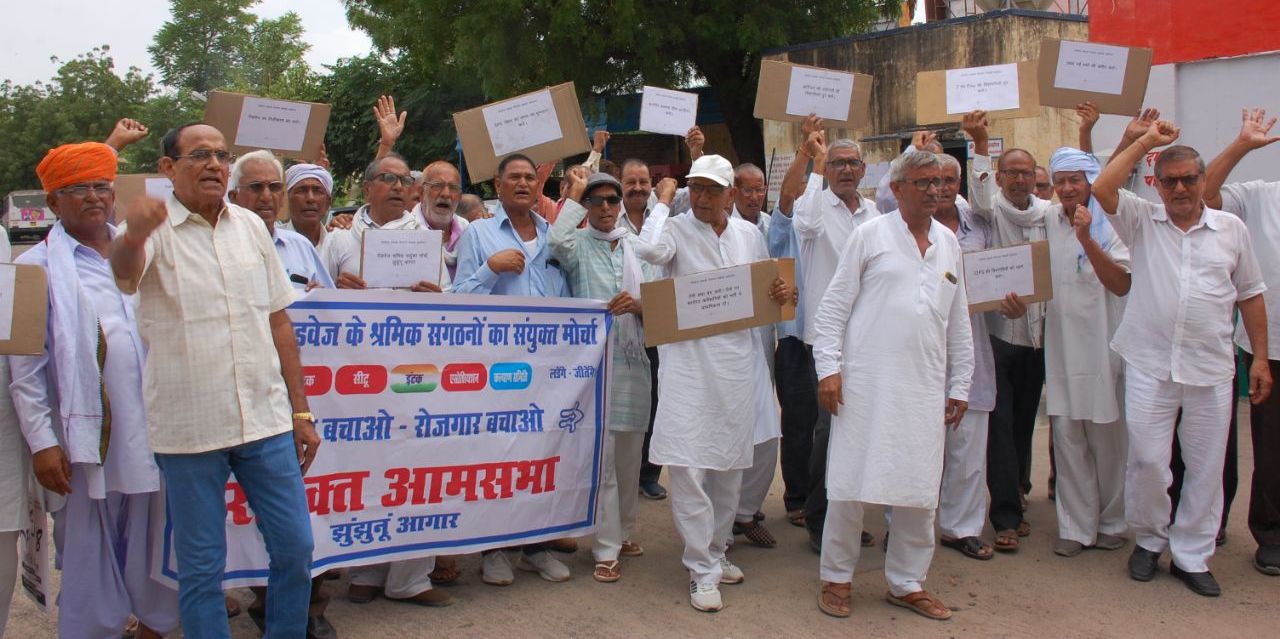 झुंझुनूं. विभिन्न मांगों को लेकर शुक्रवार को रोडवेज कर्मचारियों ने प्रदर्शन कर और मानव श्रृंखला बनाकर विरोध जताया। गजराज कटेवा प्रदेश अध्यक्ष सीटू ने बताया कि कर्मचारियों को एक तारीख से वेतन व पेंशन, पांच हजार पदों पर भर्ती, वेतन विसंगतियों को दूर की जाएं। प्रदर्शन में बनवारी लाल जाट, धर्मवीर पिलानिया, रामकुमार भैड़ा, हरिसिंह गुर्जर, प्रभुराम नारनोलिया, सूरजभान सिंह, जसवंत कटेवा, सवाई सिंह, महावीर, इंदरसिंह, विद्याधर कृष्णिया, महेंद्र चौधरी, रामेश्वर, पोकरसिंह, नेमीचंद लोटासरा, जयसिंह, सलीम, कृष्ण कुमार, दयानंद, सज्जन सिंह जानू आदि शामिल हुए।