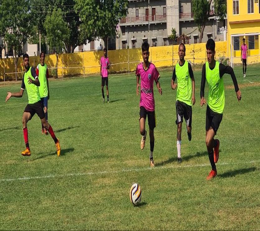 jhunjhunu sports news नवलगढ़ में बाबा रामदेव मेले पर 75वें फुटबॉल कप राज्य स्तरीय प्रतियोगिता के रोमांचक मुकाबले शुरू