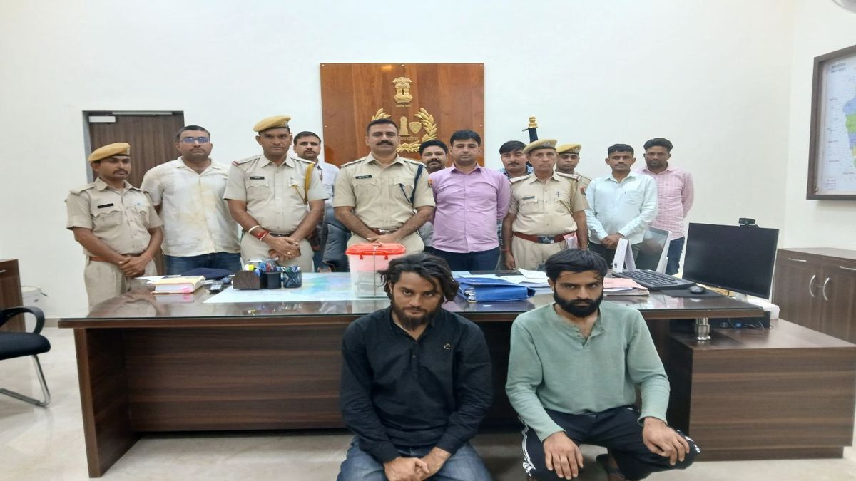 पुलिस की गिरफ्त में नीचे बैठे आरोपी।